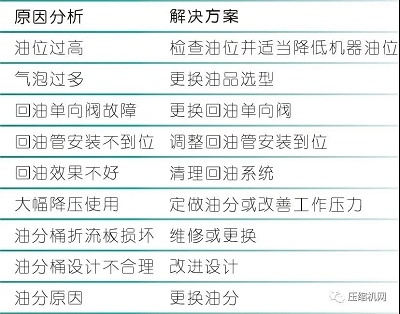 2、空壓機(jī)耗油高及解決方案